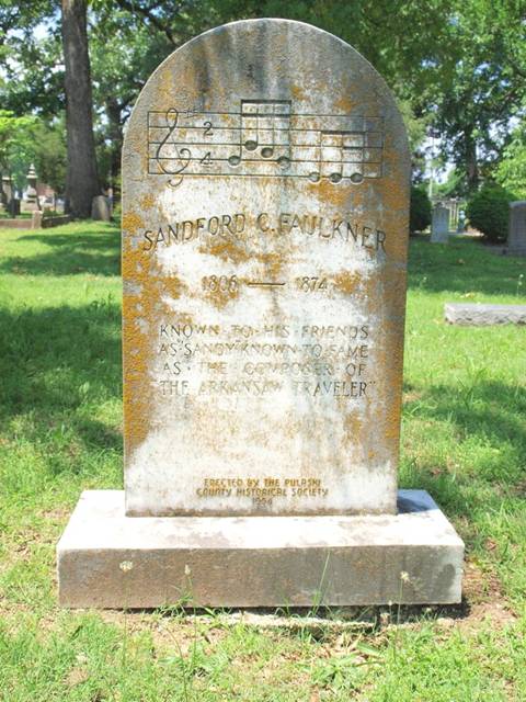 Colonel Sanford C. 'Sandy' Faulkner (1806–1874) was born in Scott County, Kentucky. He was an early western music pioneer known as a teller of tall tales and a fiddle player. He also served as a Colonel in the Confederate Army during the Civil War, and was at one point placed in command of the Arsenal at Little Rock, Arkansas. Faulkner County Arkansas, is named in his honor.